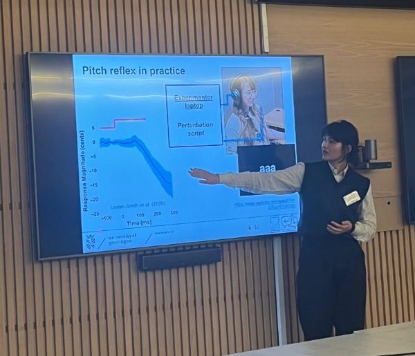 Teja Rebernik presented her work “Investigating feedback and feedforward control of vowel production by Dutch adult speakers: insights from auditory feedback perturbation tasks“